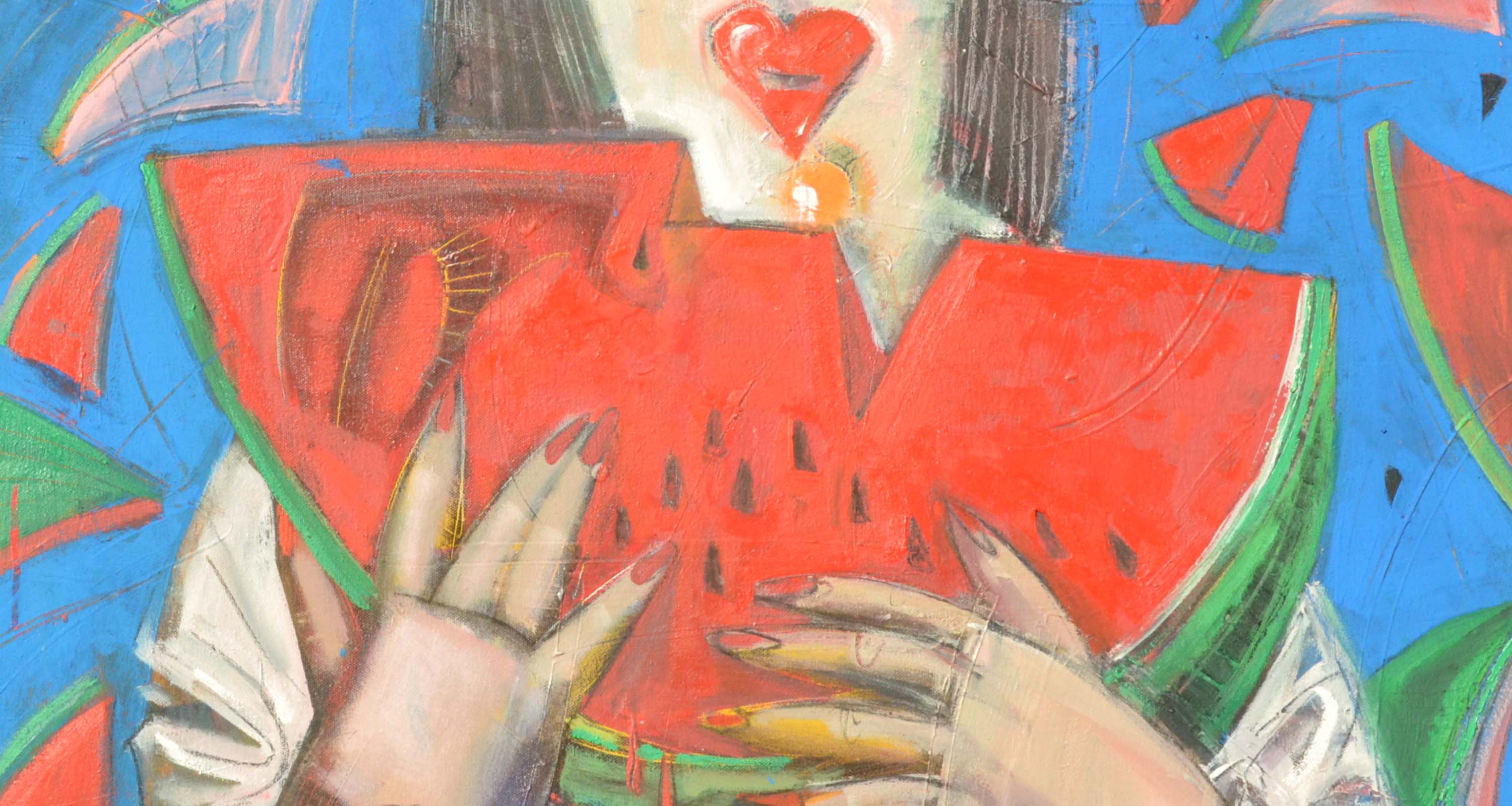 "Sie beißt ins Leben – saftig, rot und ohne Rücksicht auf Etikette. Die Frau mit Melone ist keine Muse, sie isst den Moment."